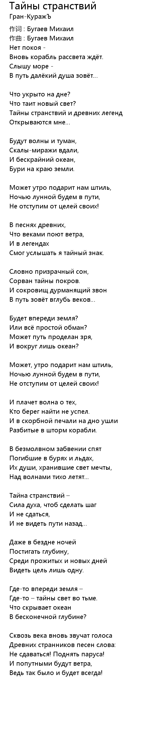 Тайны странствий  Lyrics
