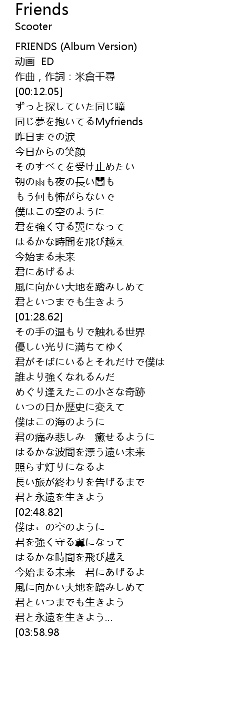 | [00:20.92] | 同じ夢を抱いてるMyfriends |