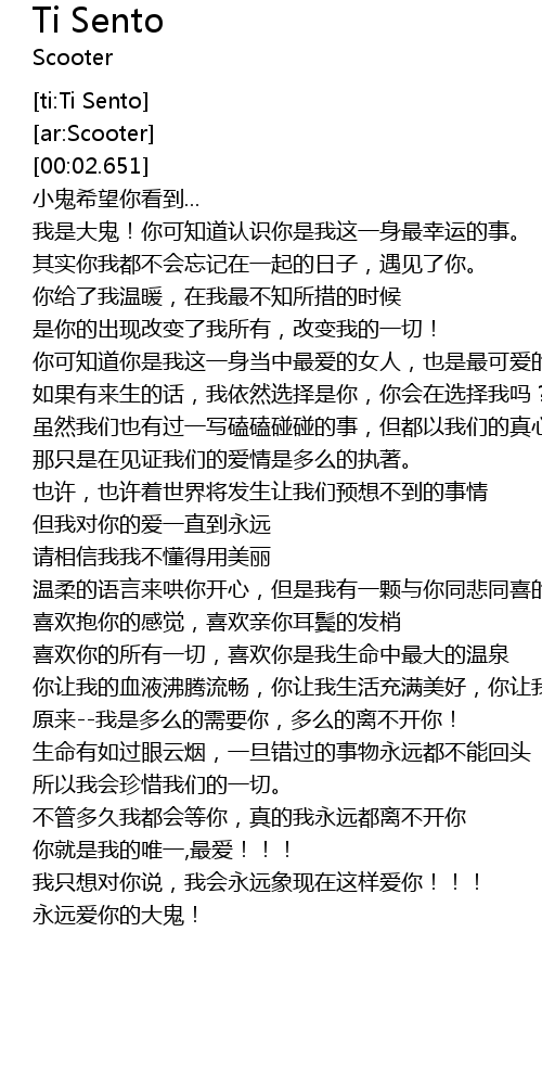 | [03:41.447] | 我只想对你说,我会永远象现在这样爱你!!! |