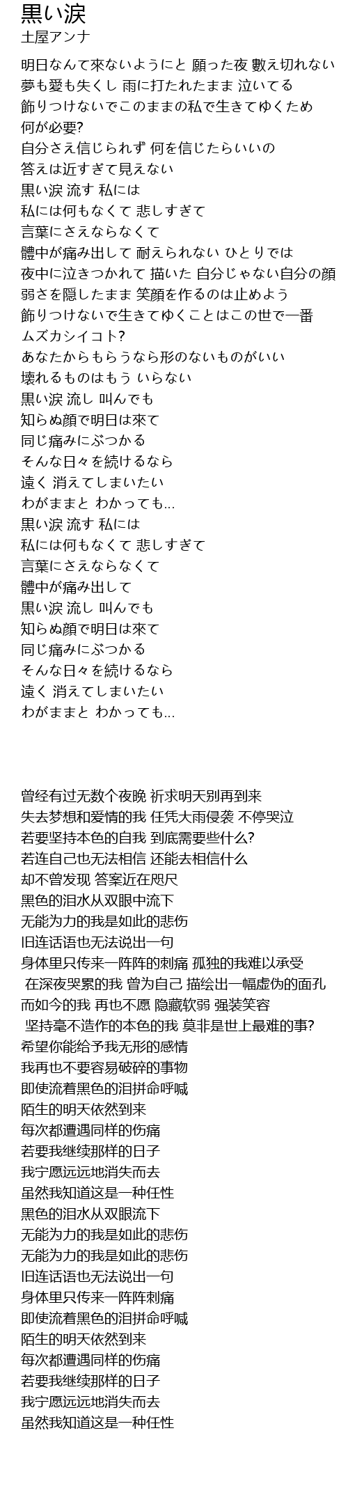 | Song | 黒い涙 |