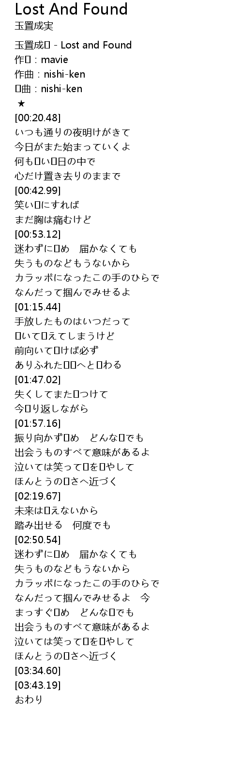 | [00:00.00] | 玉置成� - Lost and Found |