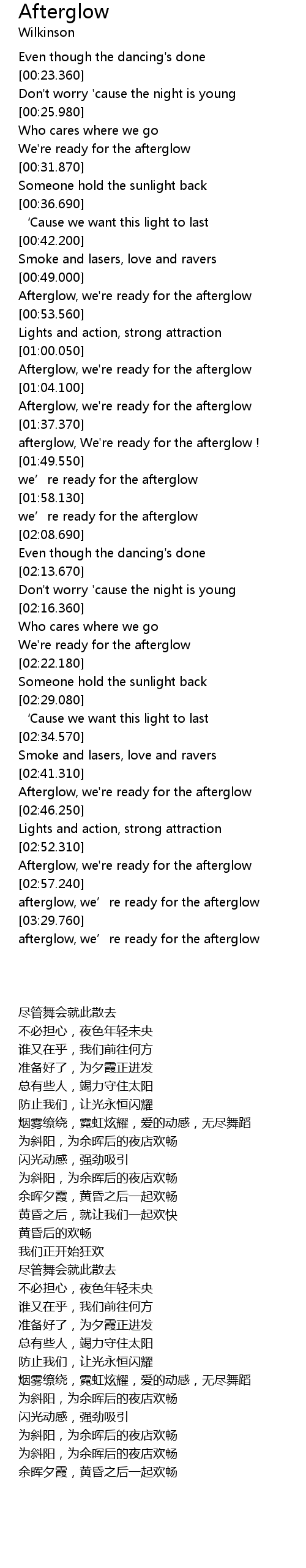| [02:52.990] | Afterglow, we' re ready for the afterglow |