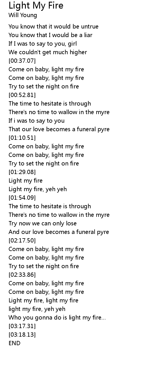 | [02:45.31] | light my fire, yeh yeh |