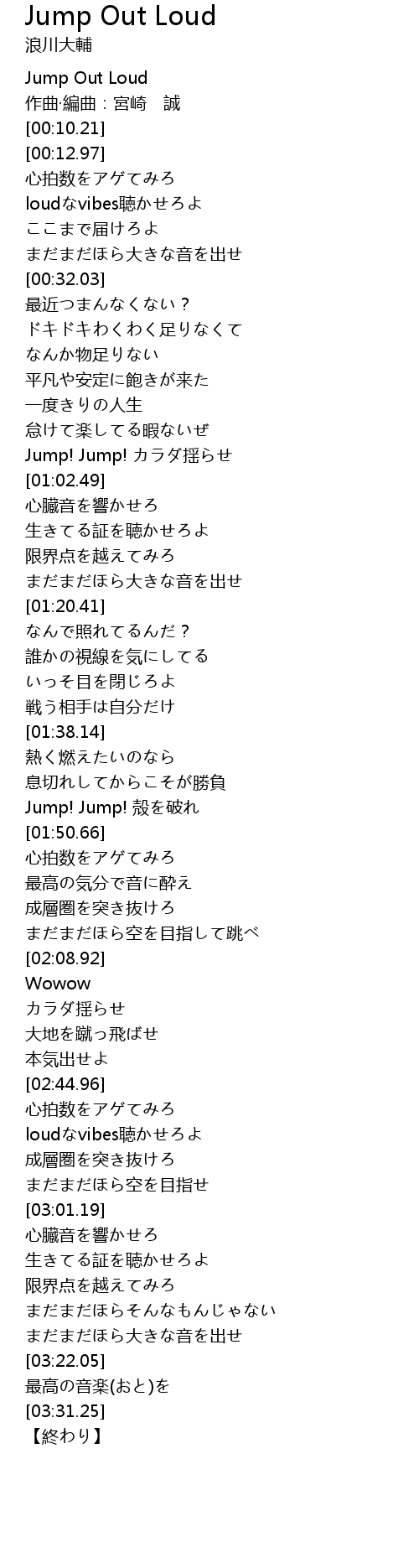 | [00:59.65] | Jump! Jump! カラダ揺らせ |