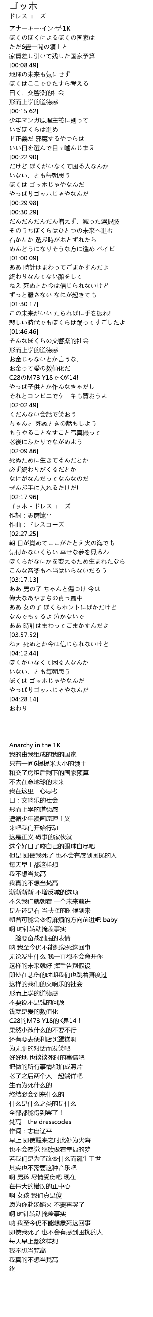 | [00:01.26] | アナーキー·イン·ザ·1K |