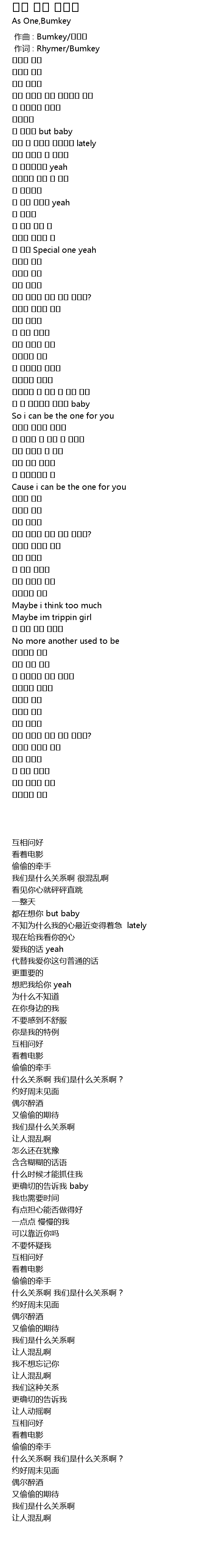 | [00:01.00] | 作词 : Rhymer/Bumkey |