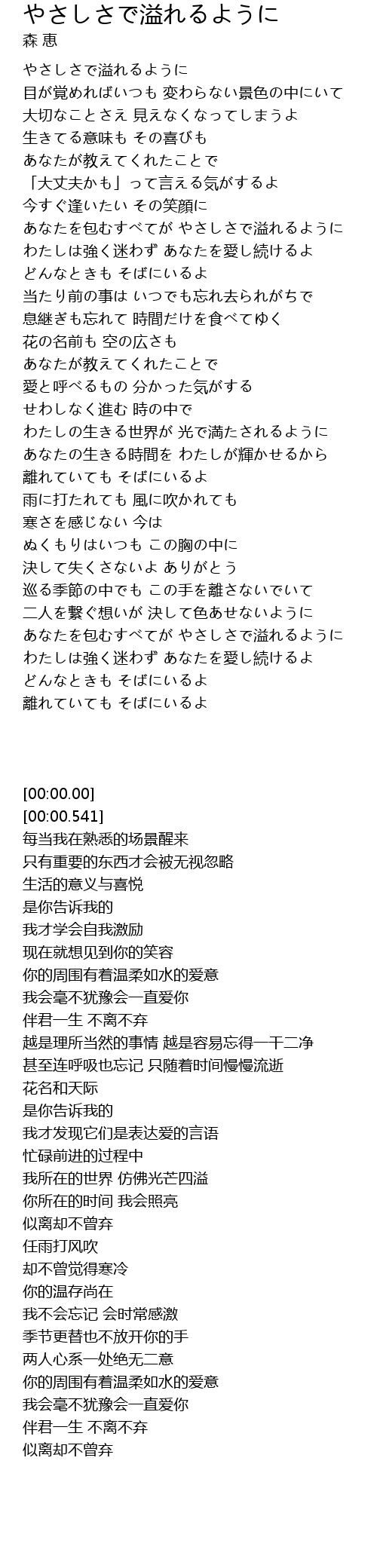 | [00:00.541] | やさしさで溢れるように |