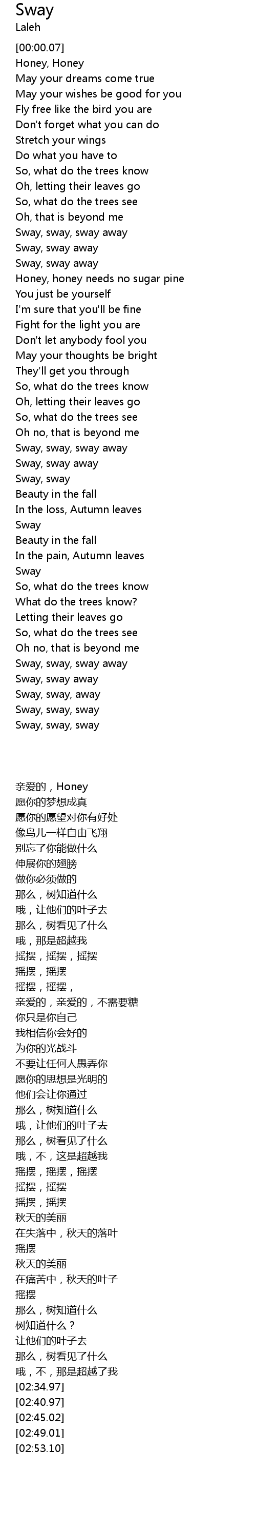 | [01:04.65] | Honey, honey needs no sugar pine |