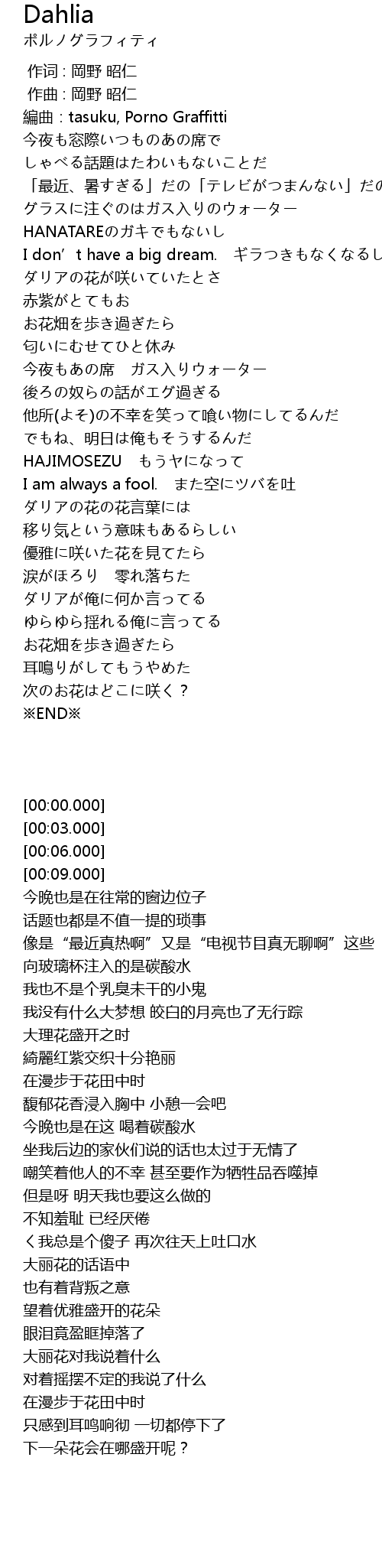 | [00:51.000] | ダリアの花が咲いていたとさ |