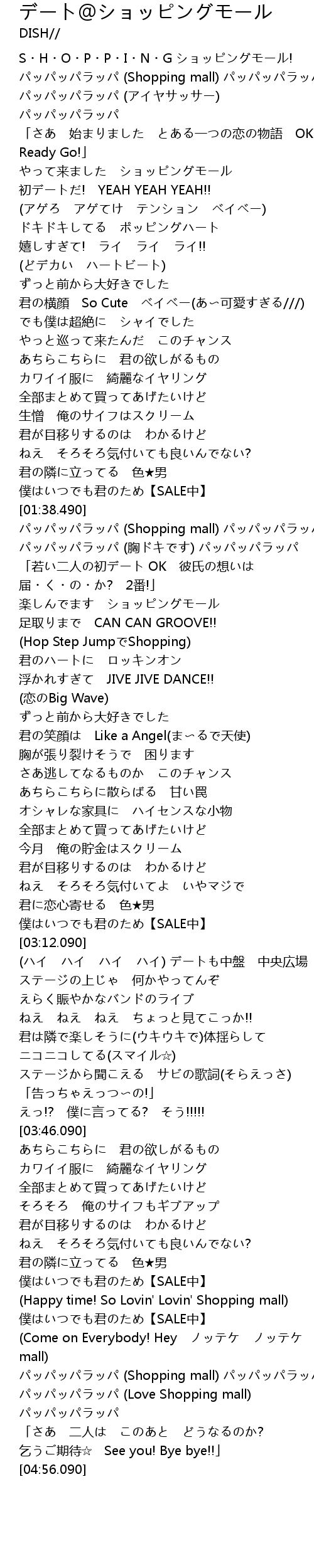 | [04:46.090] | パッパッパラッパ (Love Shopping mall) パッパッパラッパ |