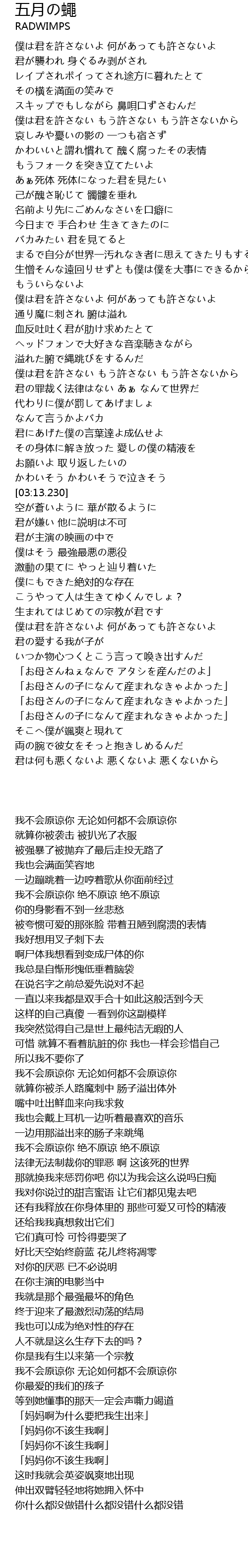 | [03:57.370] | 僕は君を許さないよ 何があっても許さないよ |