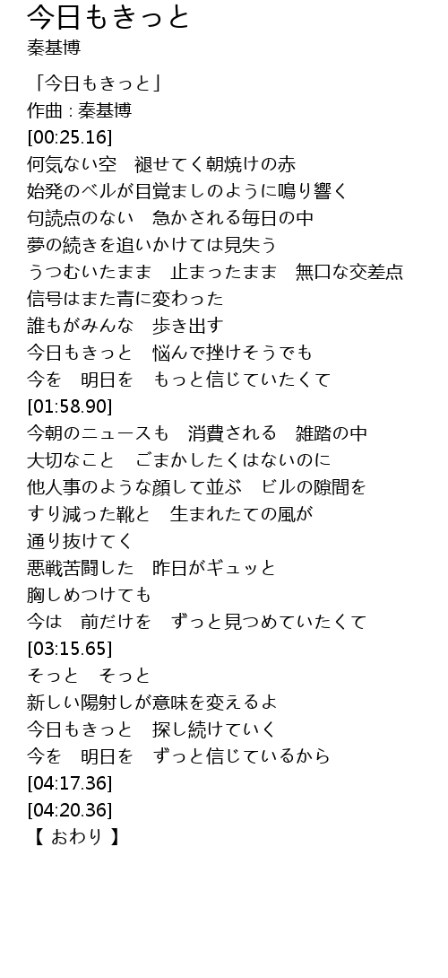 | [03:51.45] | 今日もきっと 探し続けていく |