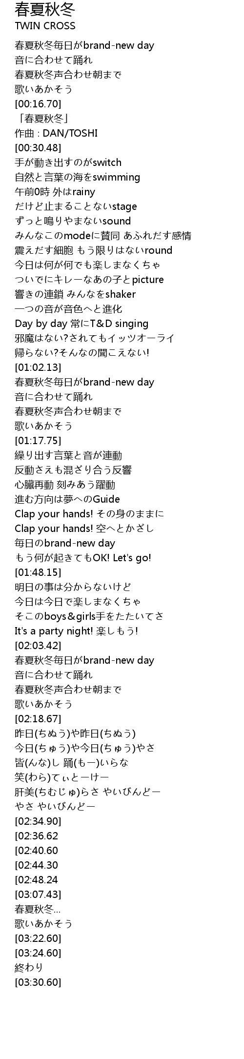 | [02:52.07][02:36.62] | 春夏秋冬毎日がbrand-new day |