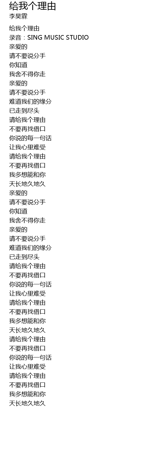 | [00:01.15] | 给我个理由 |