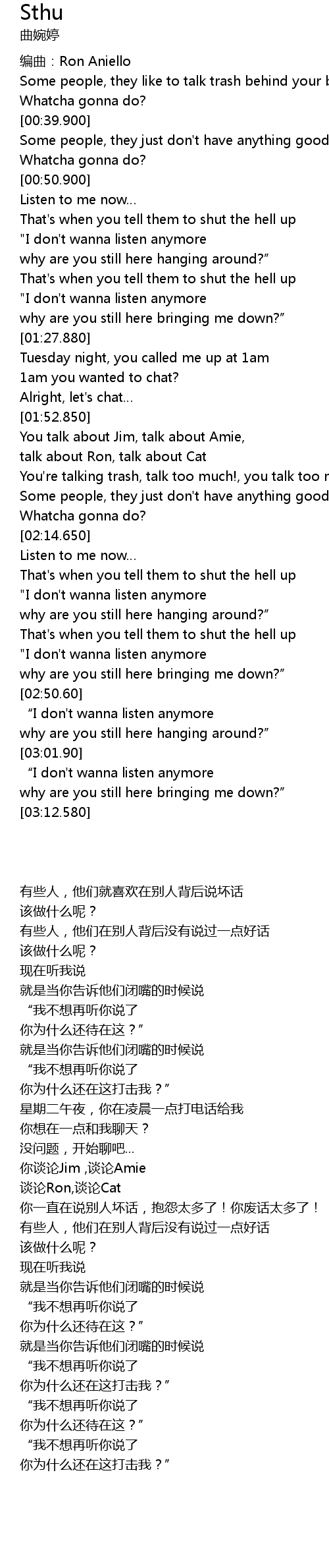 | [01:59.680] | You' re talking trash, talk too much!, you talk too much! |