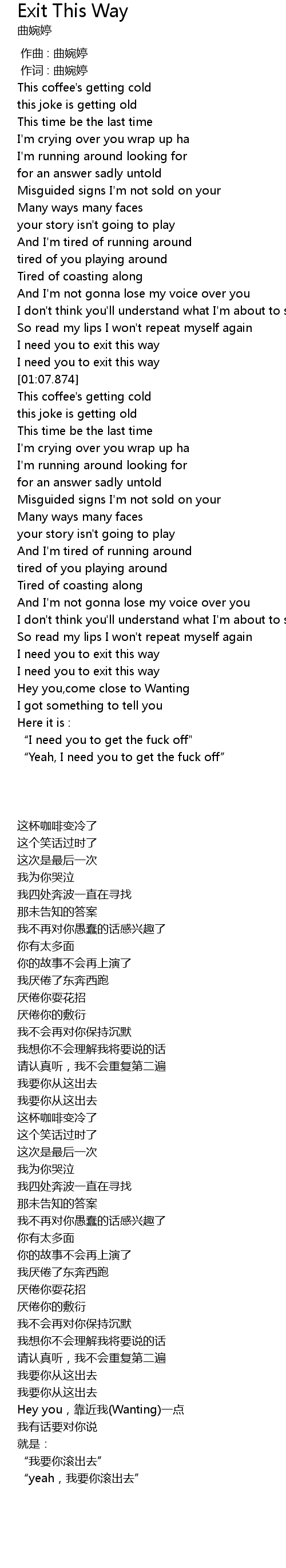 | [01:36.314] | Misguided signs I' m not sold on your |