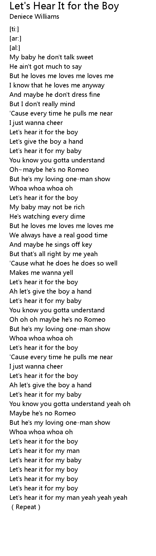| [03:27.02] | Let' s hear it for my man yeah yeah yeah |