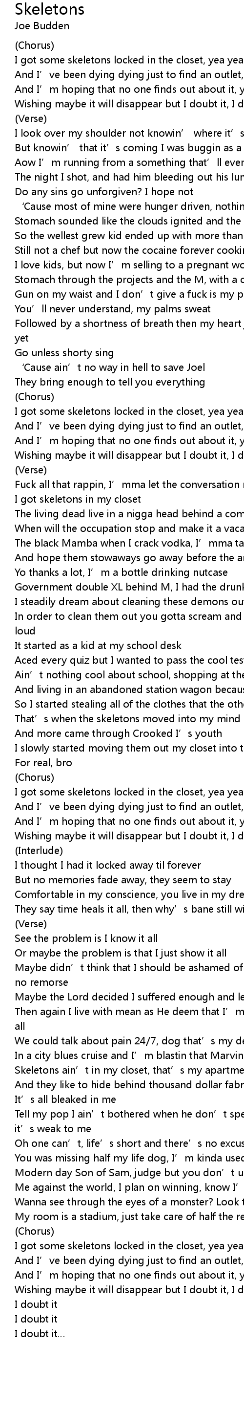| I got skeletons in my closet | |