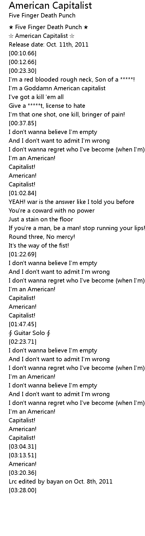 | [00:03.72] | American Capitalist |