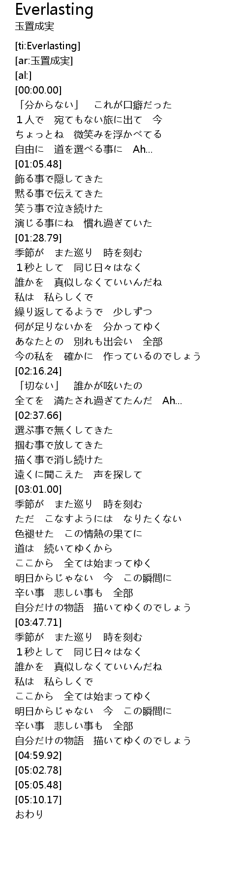 | [04:18.10] | 1秒として 同じ日々はなく |