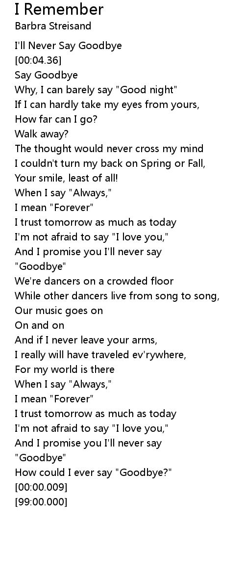 I'll Never Say Goodbye |