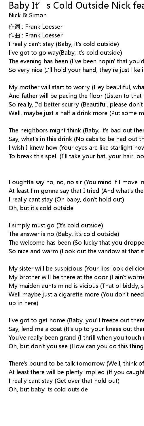 | Song | Baby It’s Cold Outside Nick feat Katie Melua |
