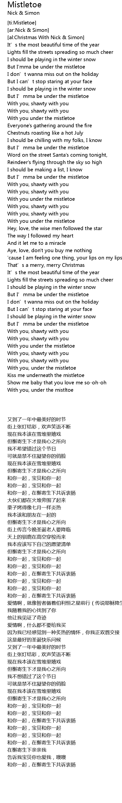 | [02:33.97] | Kiss me underneath the mistletoe |
