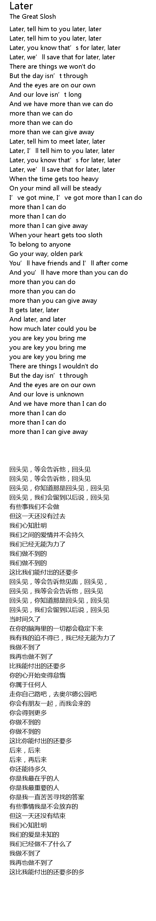 | [02:39.62] | Later, I' ll tell him to you later, later |