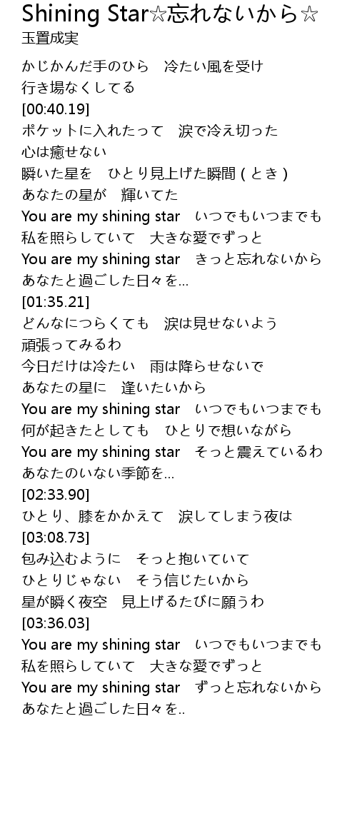| [03:36.83] | You are my shining star いつでもいつまでも |
