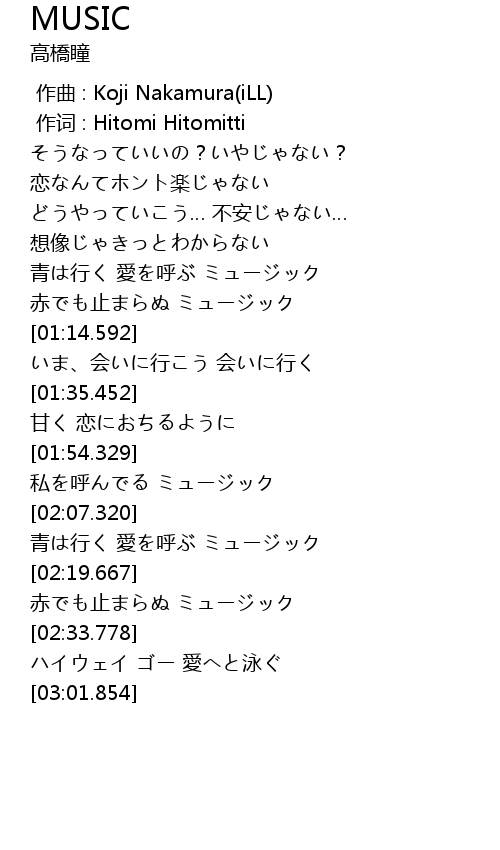 | [02:11.712] | 青は行く 愛を呼ぶ ミュージック |