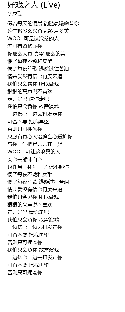 | [03:53.840] | 我怕只会负你 故需演戏 |