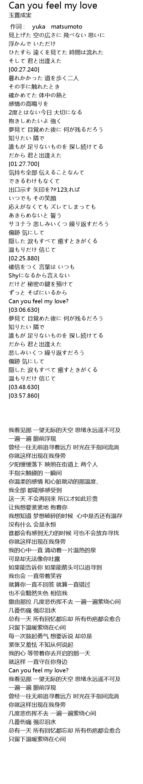 | [00:00.00] | zuo ci : yuka matsumoto |
