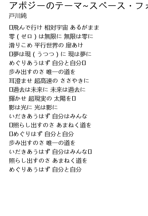 | [00:45.52] | 飛んで行け 相対宇宙 あるがまま |