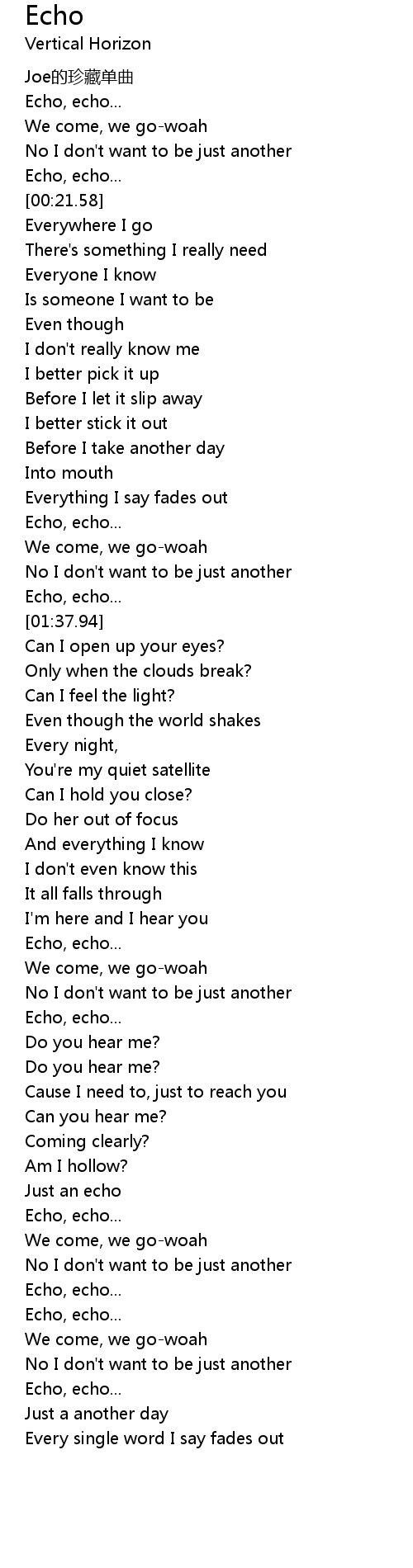 | [01:15.22] | Echo, echo... |