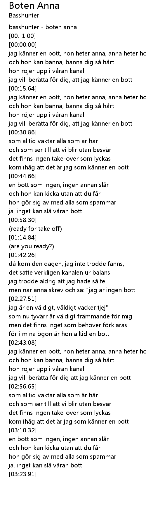| [02:43.43] | jag känner en bott, hon heter anna, anna heter hon |