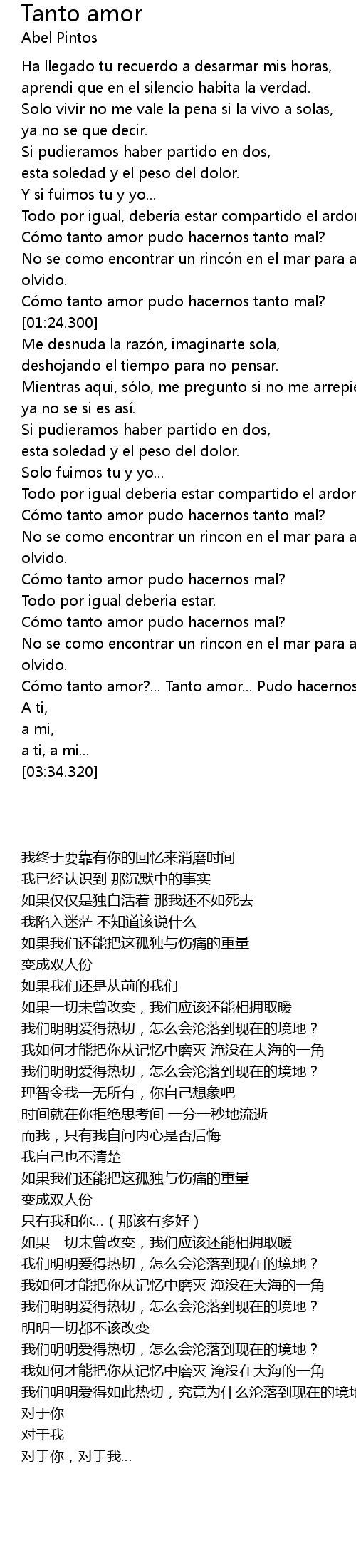 | [03:06.600] | Có mo tanto amor?... Tanto amor... Pudo hacernos tanto mal? |