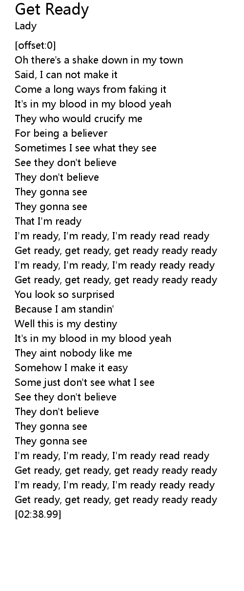 | [02:22.17] | I'm ready, I'm ready, I'm ready read ready |
