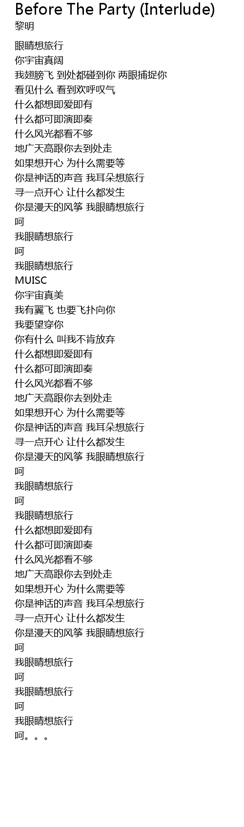 | 你是神话的声音 我耳朵想旅行 | |