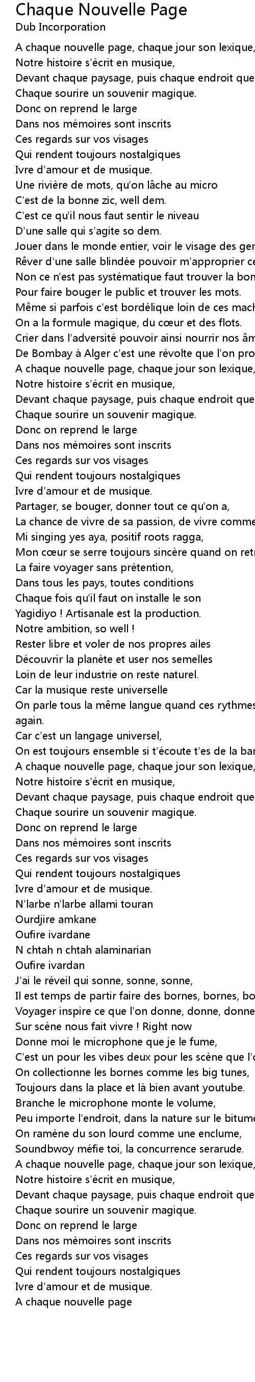 | [02:23.26] | On parle tous la m me langue quand ces rythmes nous ressemble, sing again. |