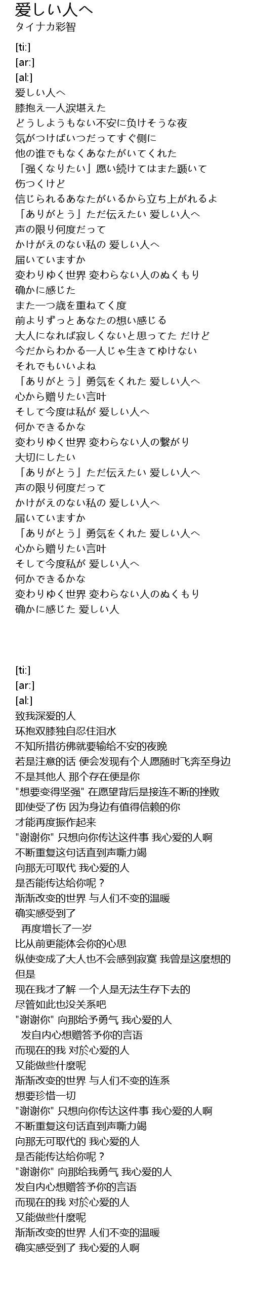 | [03:52.60] | かけがえのない私の 爱しい人へ |