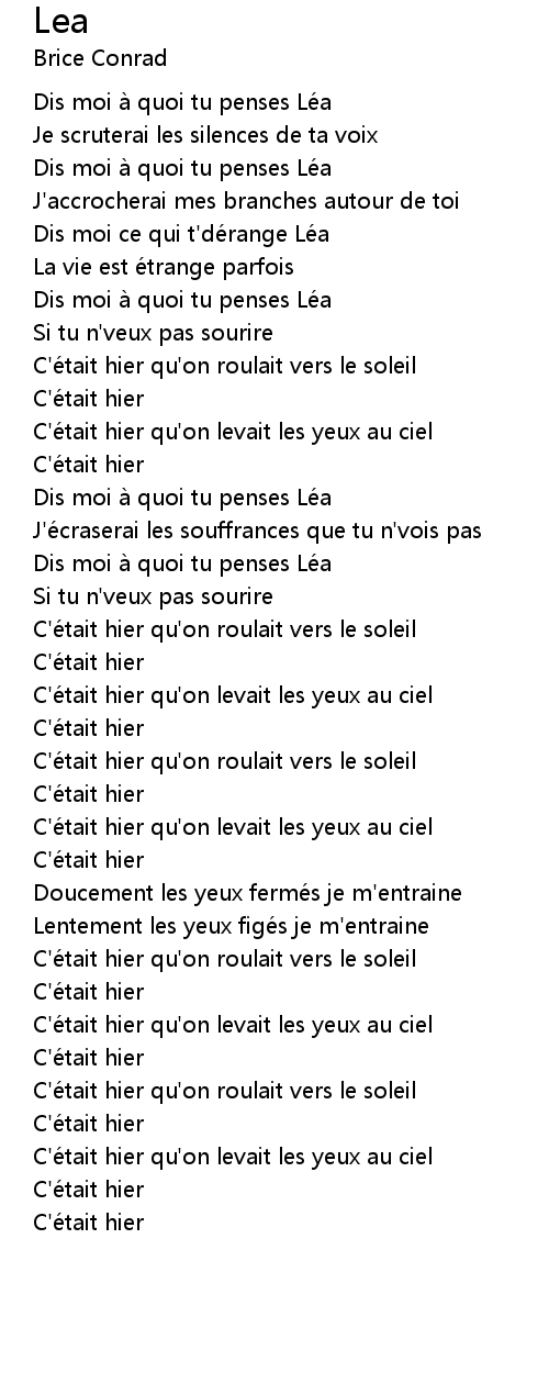 | [00:38.52] | Dis moi à quoi tu penses Léa |