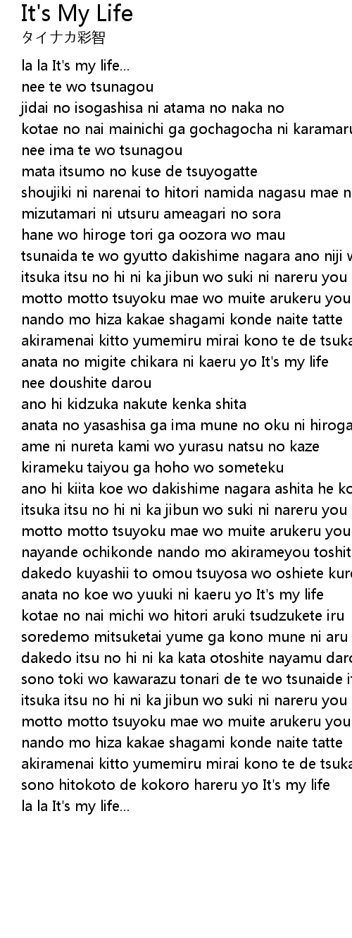 | anata no koe wo yuuki ni kaeru yo It's my life | |