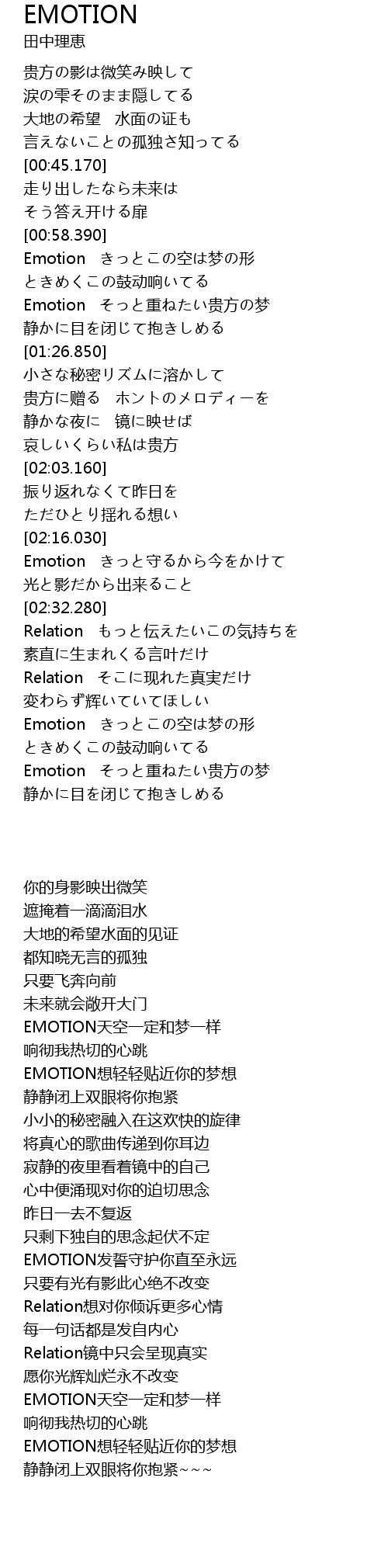 | [02:18.290] | Emotion きっと守るから今をかけて |