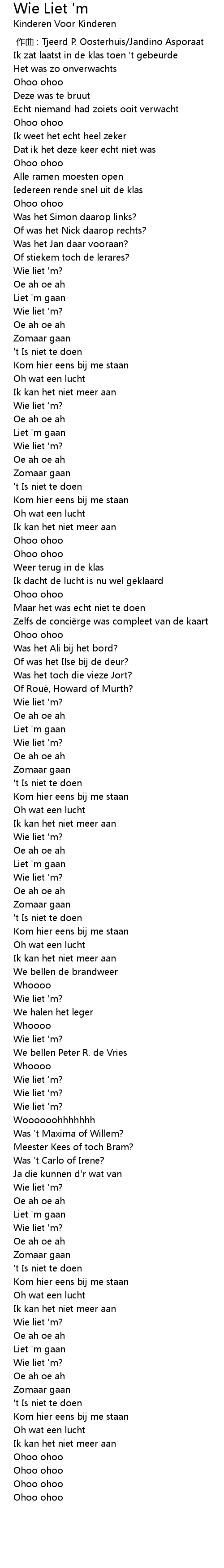 | [00:31.47] | Iedereen rende snel uit de klas |
