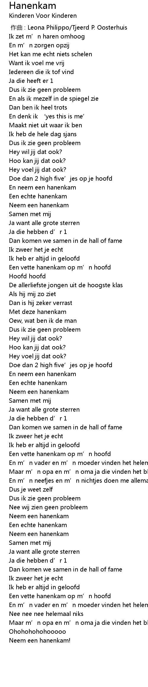 | [00:44.60] | En neem een hanenkam |