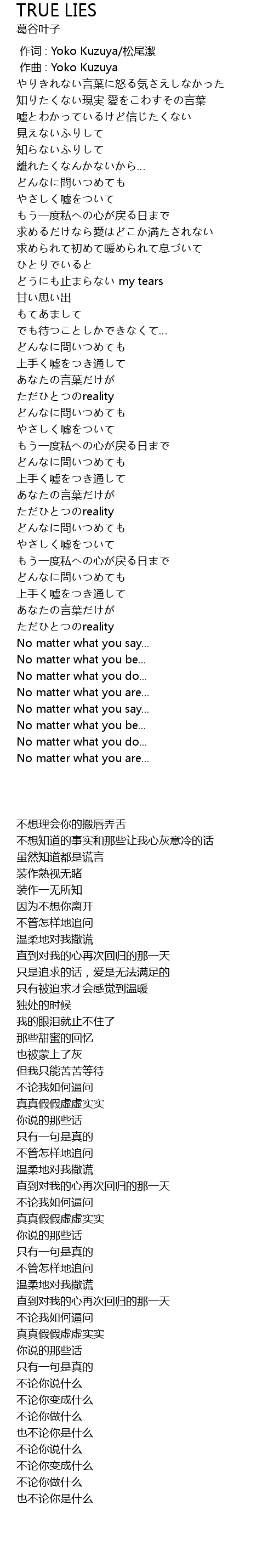 | [00:01.000] | zuò qǔ : Yoko Kuzuya |