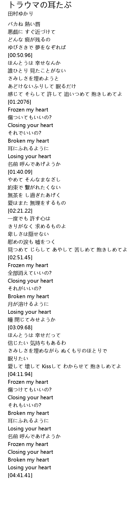 | [04:28.39] | Frozen my heart |