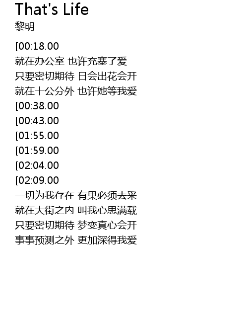 | [02:38.00][01:59.00][00:52.00] | dan yao tian tian you qing yi tian tian du man yi |