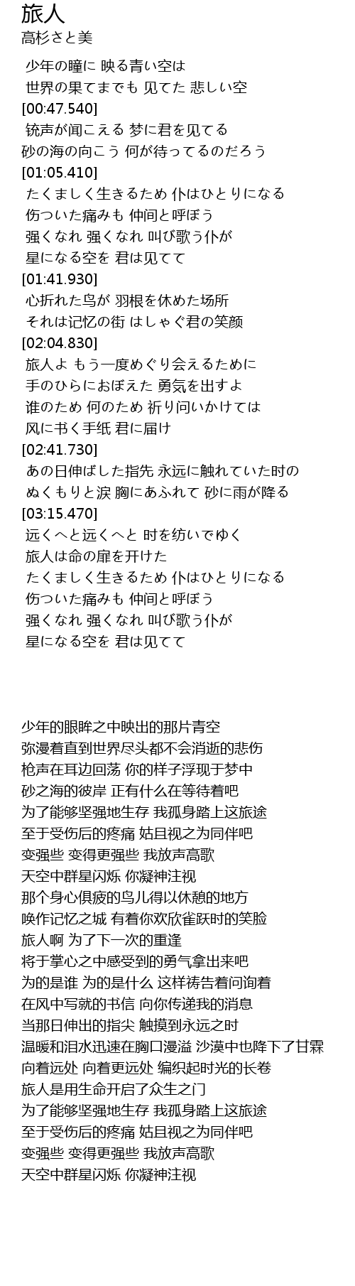 | [02:08.100] | 旅人よ もう一度めぐり会えるために |
