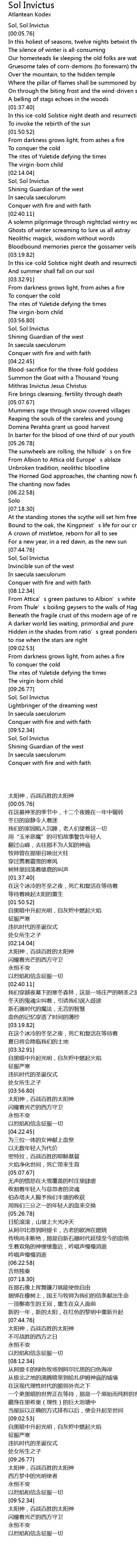 | [00:00.00] | Sol, Sol Invictus |